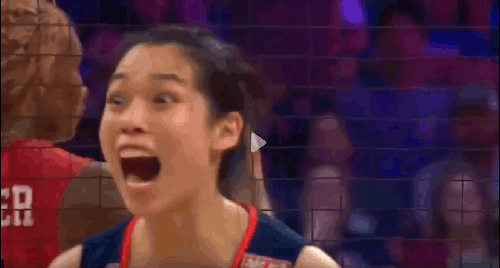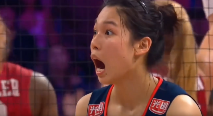 中国女排在美国站的最后一场比赛对美国队,第五局最后一分扣下后,中国女排18-16锁定胜局。后三进攻扣下最后一分的庄宇珊转过身来,高兴庆祝得分。但她突然张大嘴巴惊呆了: